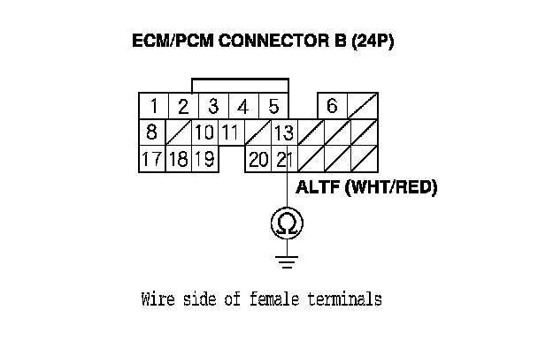 8. Check for continuity between body ground and ECM/PCM connector terminal B13.