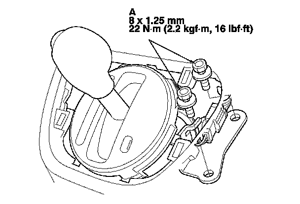 2. Remove the shift lever mounting bolts (A).