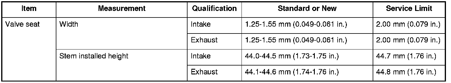 Valve Seat Specifications