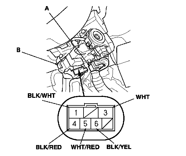 3. Disconnect the 7P connector (A) from the ignition switch (B).