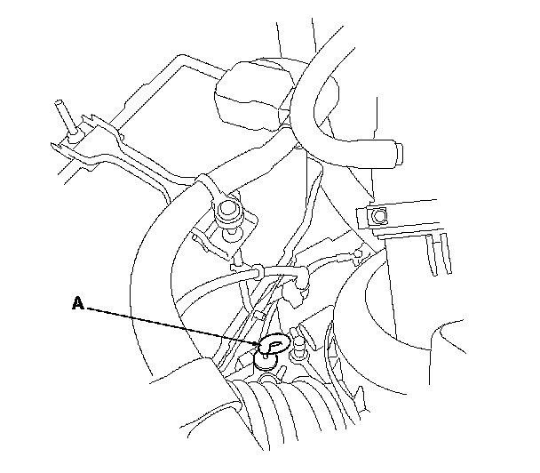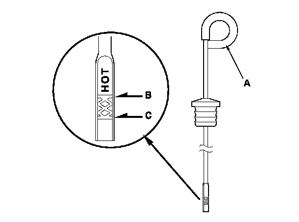5. Remove the ATF dipstick (A), and check the ATF level. It should be between the upper mark (B) and the lower mark (C).