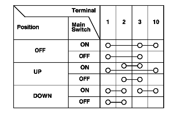 4. Check for continuity between the terminals in each switch position according to the tables.