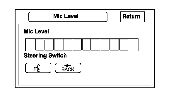 - Press the navigation TALK button on the steering wheel, wait until you hear a beep, and in a normal voice say "testing". The TALK indicator on the screen should momentarily turn green, and the text Now Recording... should appear in yellow. If the talk indicator shown on the screen does not briefly turn green, check the wiring from the steering wheel navigation TALK button to the audio-navigation unit. If there is no Mic Level movement when you speak, then you should check the wires running from the microphone in the roof console to the navigation unit. If the wires are OK, the microphone must be faulty; replace the microphone located in roof console. Service and Repair