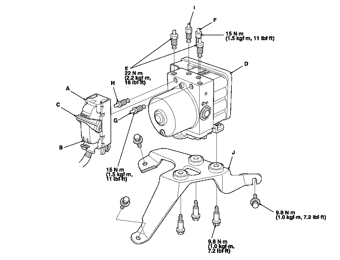 4. Remove the VSA modulator-control unit with the bracket (J) from the body.