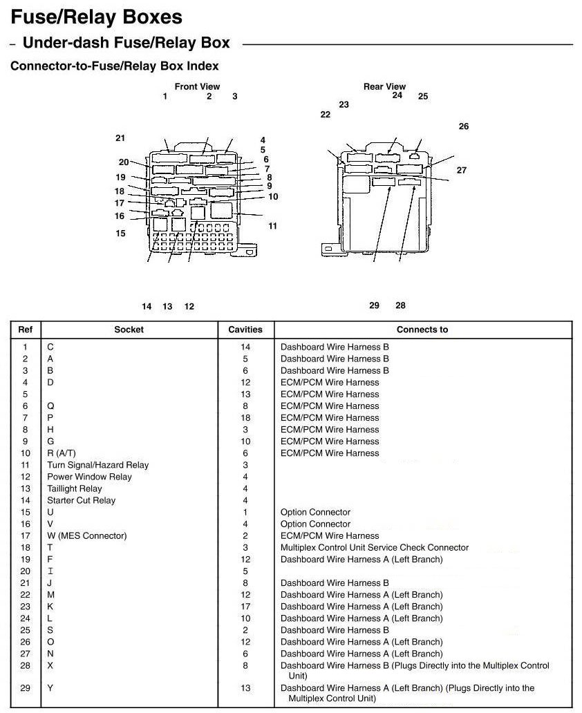 Under-dash Fuse/Relay Box - Connector-to-Fuse/Relay Box Index
