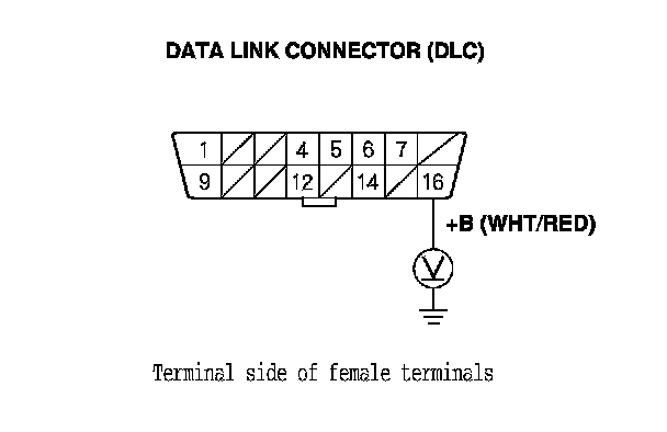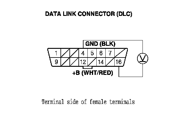 24. Measure the voltage between DLC terminal No. 16 and body ground.