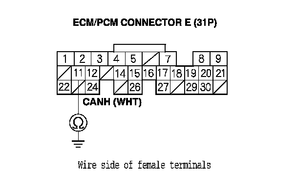 31. Check for continuity between ECM/PCM connector terminal E11 and body ground.