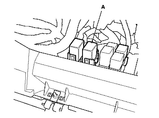 63. Remove the glove box, Service and Repair then remove PGM-FI main relay 1 (FI MAIN) (A).