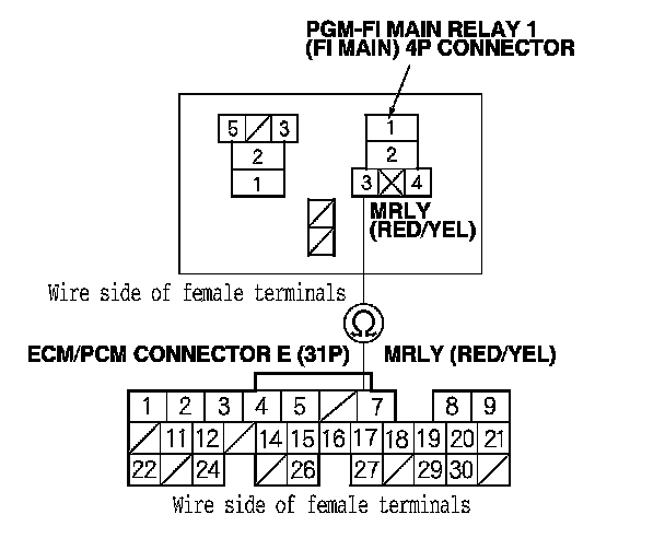 NO - Repair open in the wire between the ECM/PCM (E7) and PGM-FI main relay 1 (FI MAIN).