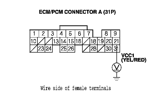 86. Measure the voltage between body ground and ECM/PCM connector terminal E5.