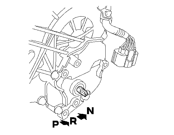6. Make sure the selector control shaft is in N. If necessary, move the shift lever from P to N.