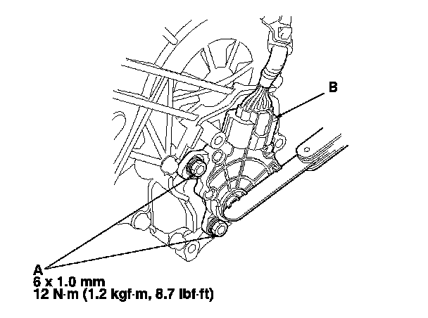 9. Tighten the bolts (A) on the transmission range switch while you continue to hold N. Do not move the transmission range switch when tightening the bolts. Remove the feeler gauge.