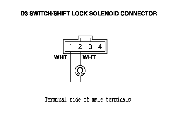 5. Disconnect the D3 switch/shift lock solenoid connector.