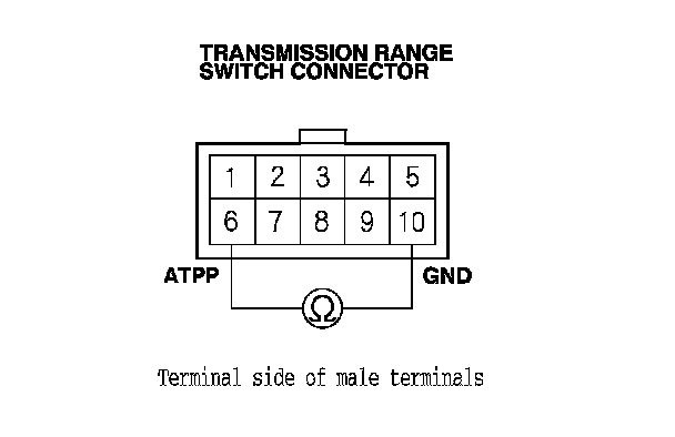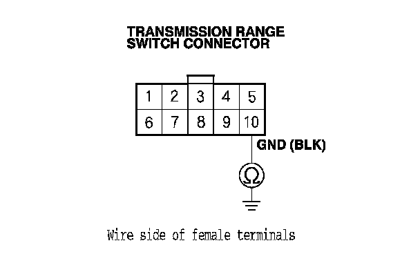 17. Check for continuity between transmission range switch connector terminal No. 10 and body ground.