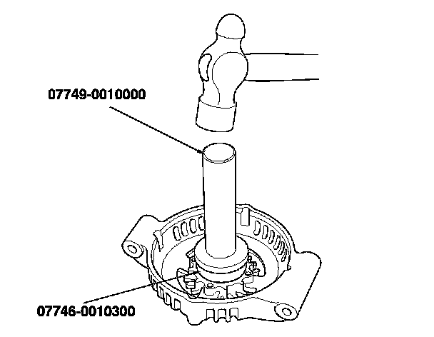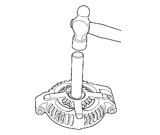 12. Install a new front bearing in the drive-end housing with a hammer, the driver, and the attachment, 42 x 47 mm.
