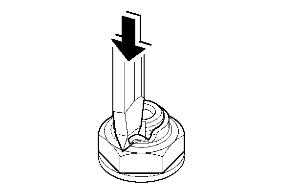 2. Cut the locking tab of the transfer output shaft locknut using a chisel. Keep all of the chiseled particles out of the transfer output shaft.