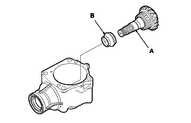 7. Remove the transfer output shaft (A), then remove the transfer spacer (B) from the transfer output shaft.