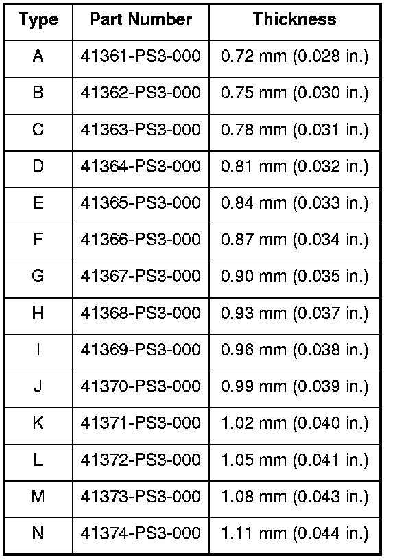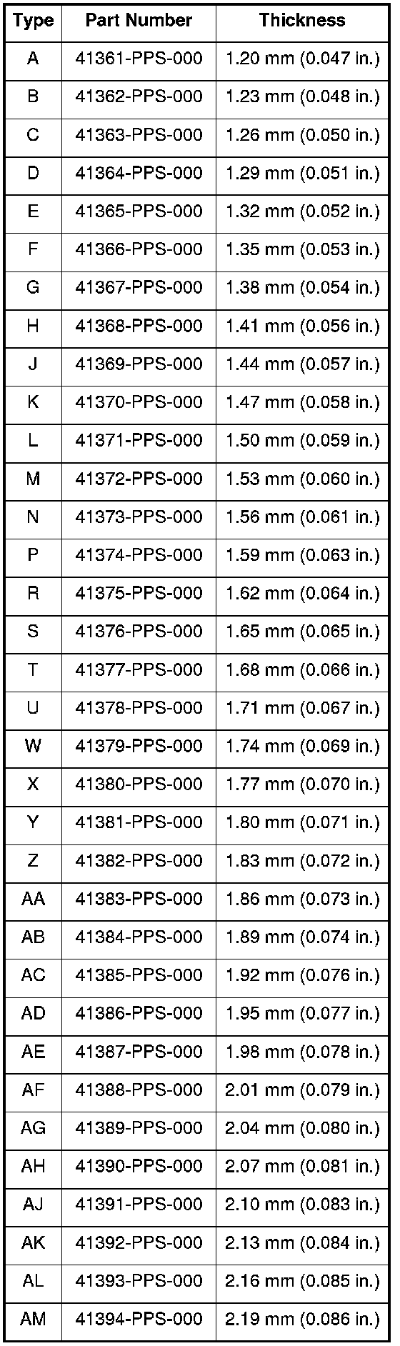 38. Measure the thickness of the removed 76 mm thrust shim, and select a new 76 mm thrust shim.