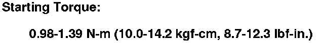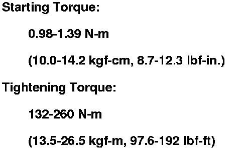 9. Tighten the locknut while measuring the starting torque so the starting torque is within 0.98-1.39 N-m (10.0-14.2 kgf-cm, 8.7-12.3 lbf-in.).