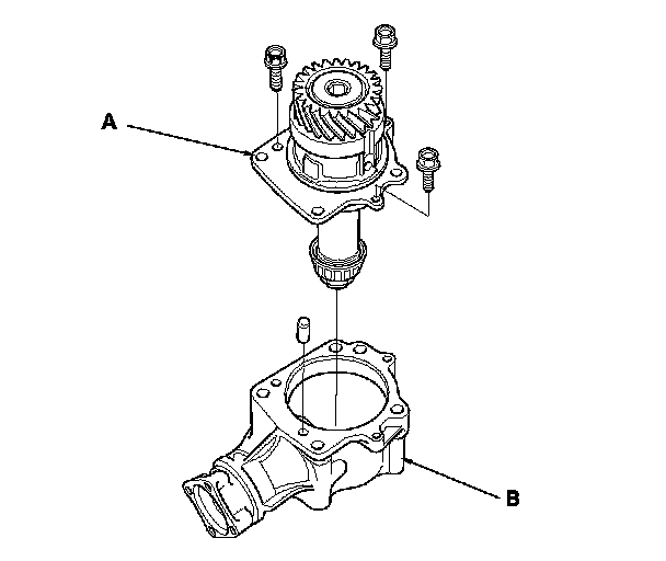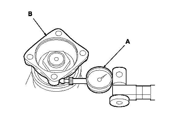15. Set a dial indicator (A) on the companion flange (B), then measure the transfer gear backlash.