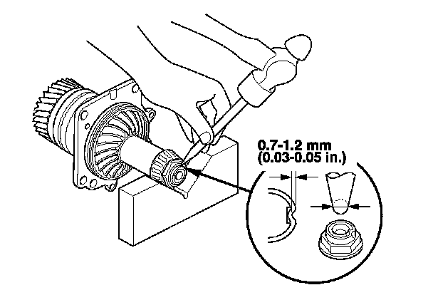 29. Stake the locknut into the transfer output shaft using a 3.5 mm punch.