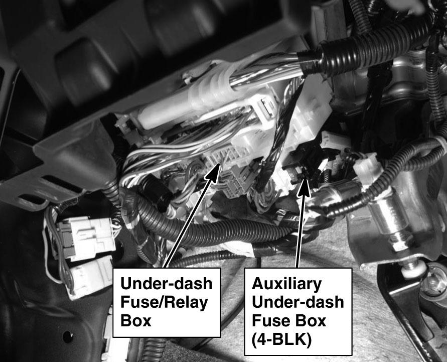 Under-Dash Fuse/Relay Box Under left end of dash. See Figure.