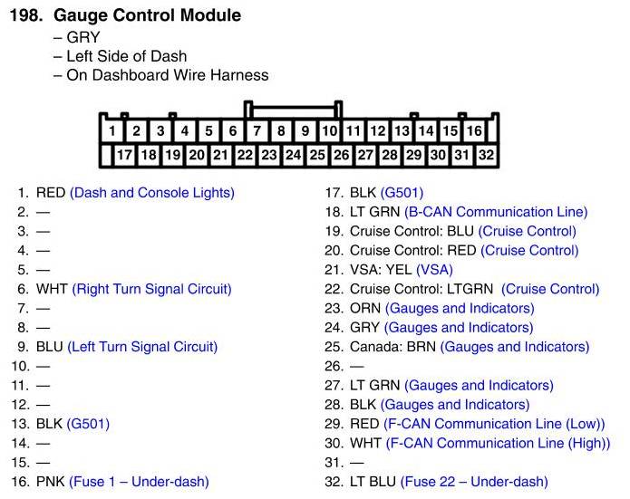 View 198 - Gauge Control Module Connector View