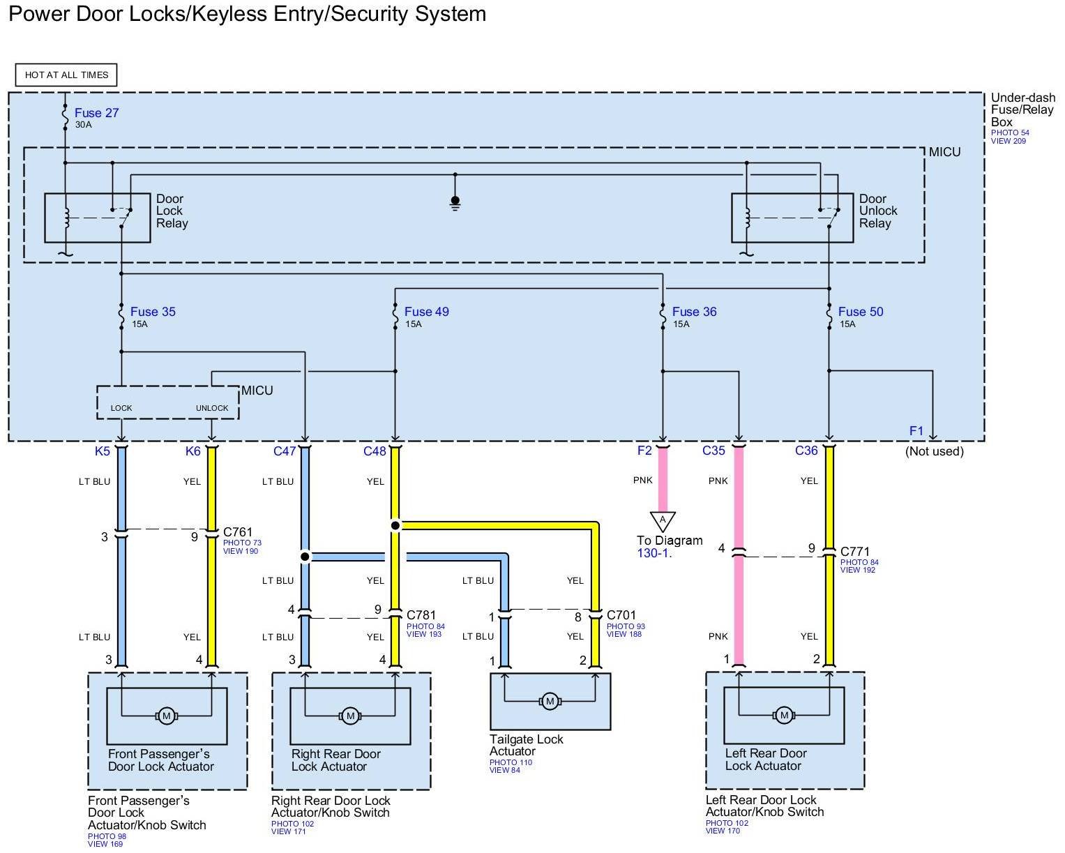 Diagram Set 130 (Power Door Locks/Keyless Entry/Security System)