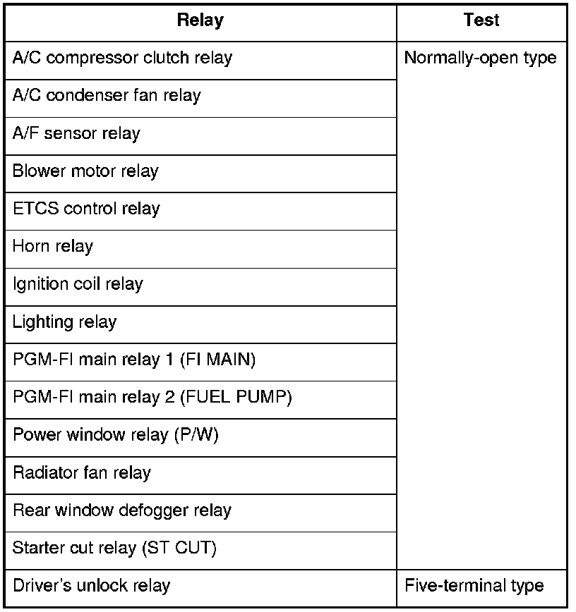 Use this chart to identify the type of relay, then do the test listed for it.