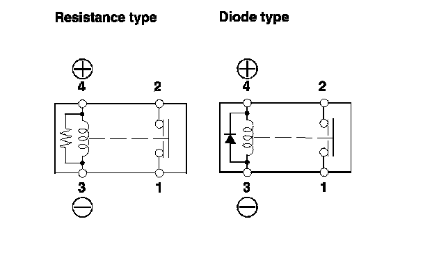 - There should be continuity between terminals No. 1 and No. 2 when battery power is connected to terminal No. 4, and body ground is connected to terminal No. 3.