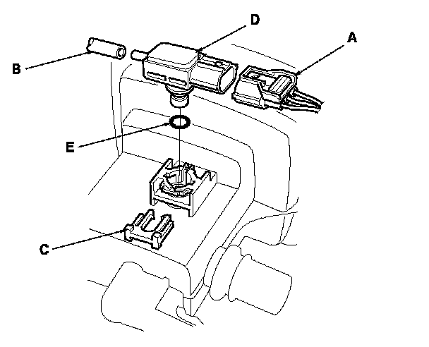 4. Install the parts in the reverse order of removal with a new O-ring (E).