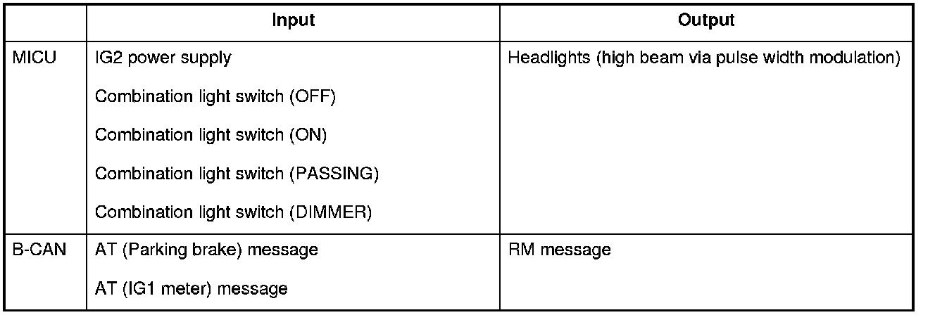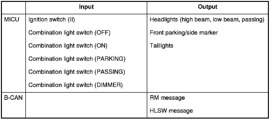 The MICU control of the lighting system and the security horn is based on input signals of each switch and B-CAN signals.