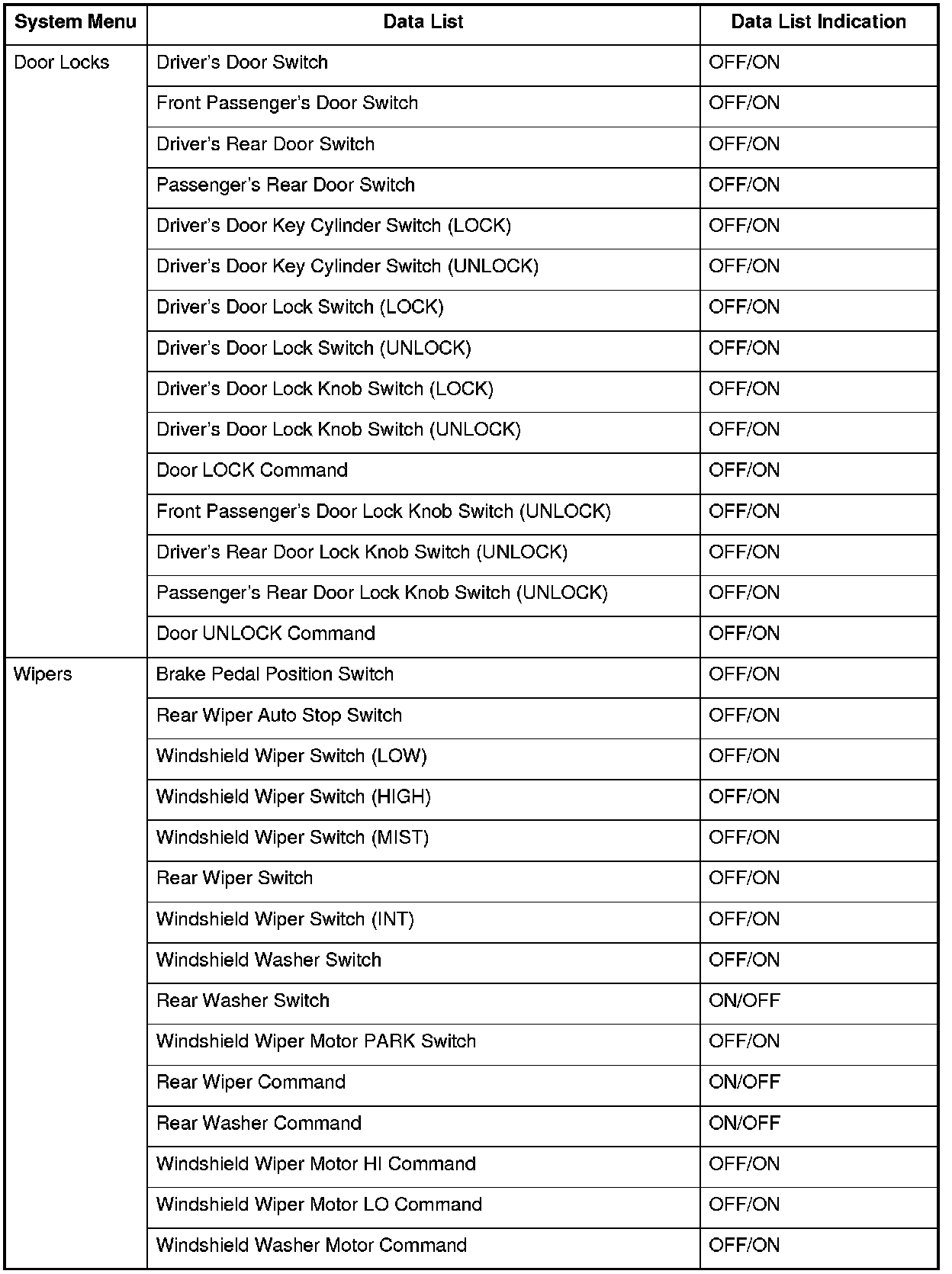- Wiper/washer