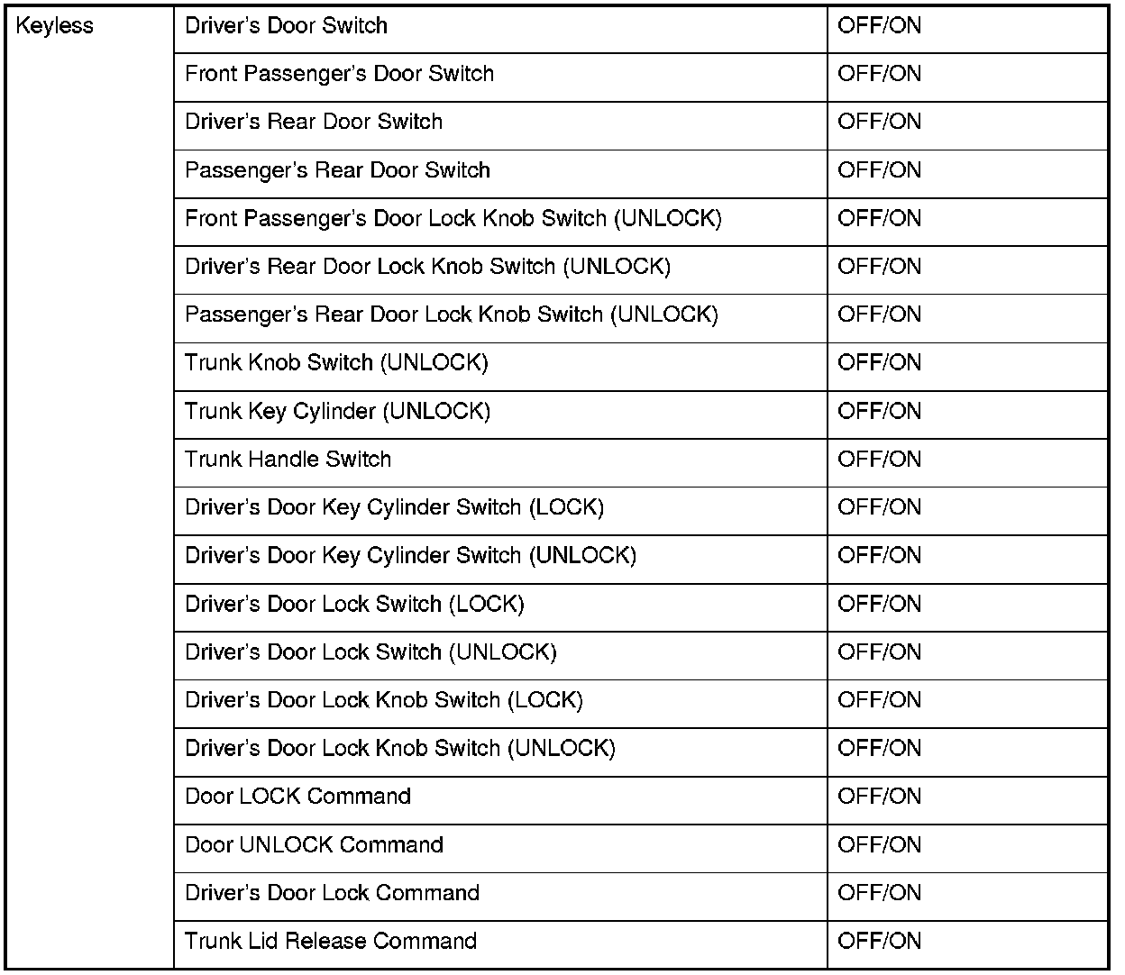 Auto Power Door Locks (UNLOCK operation)