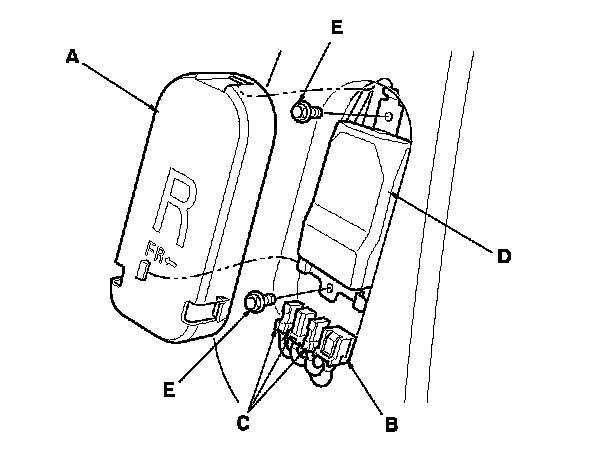 2. Connect the ODS unit harness 18P connector (C) and sensor connectors (D) to the ODS unit. Reinstall the cover (E).