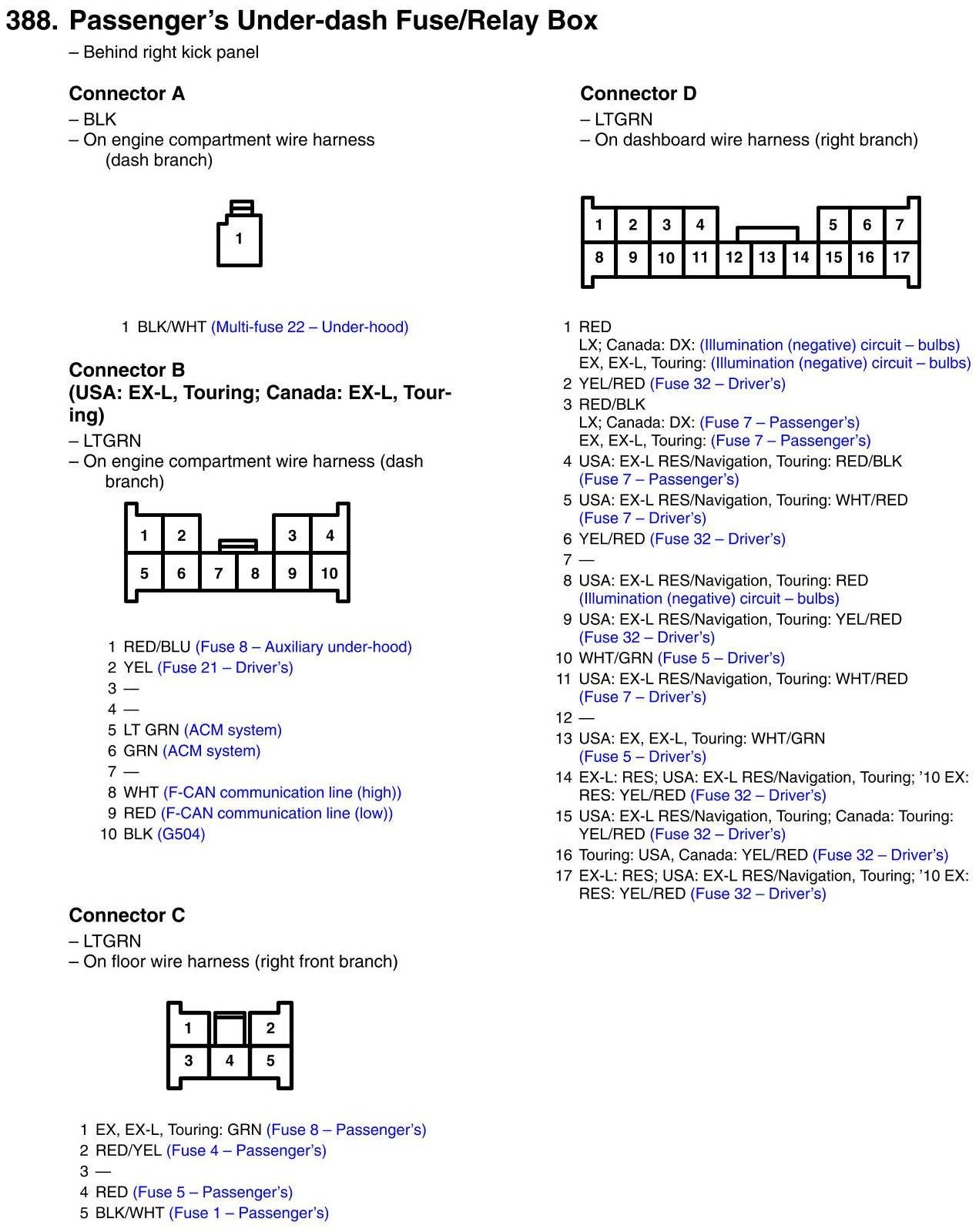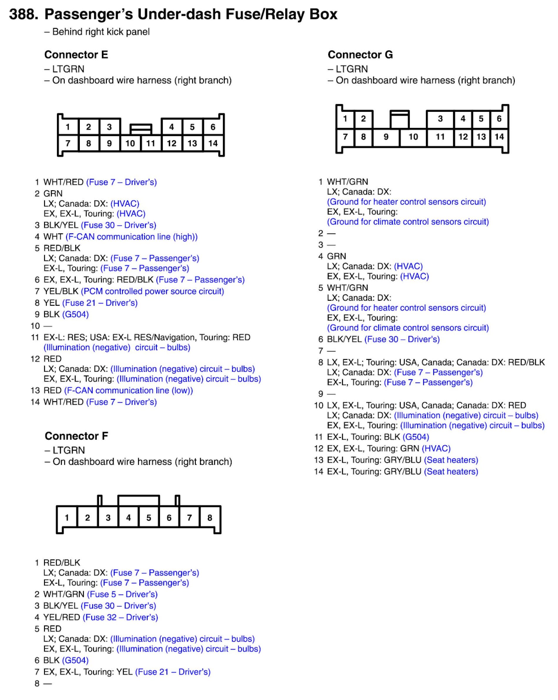 Passenger's Under-dash Fuse/Relay Box Connector View