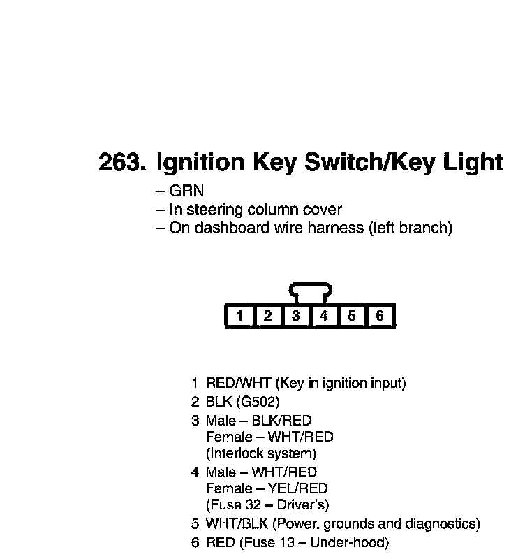 Ignition Key Switch/Key Light Connector View