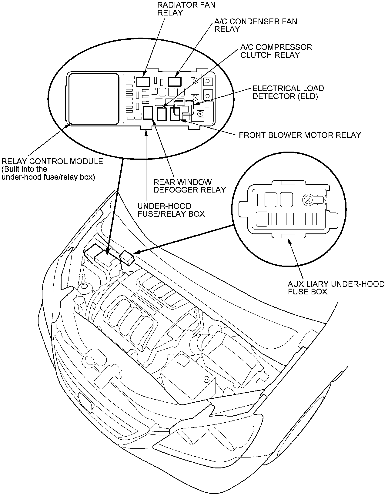Relay and Control Unit Locations - Engine Compartment