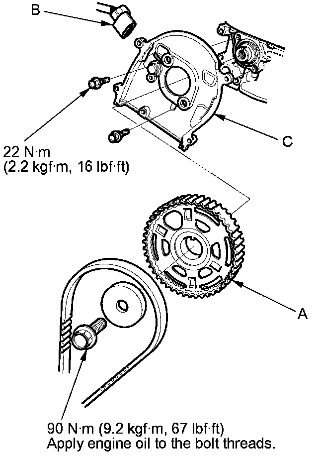 1. Remove the timing belt; J35A6 engine Timing Belt Removal (J35A6), J35A7 engine ('08-10 models) Timing Belt Removal (J35A7).