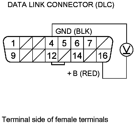 25. Measure the voltage between DLC terminals No. 4 and No. 16.