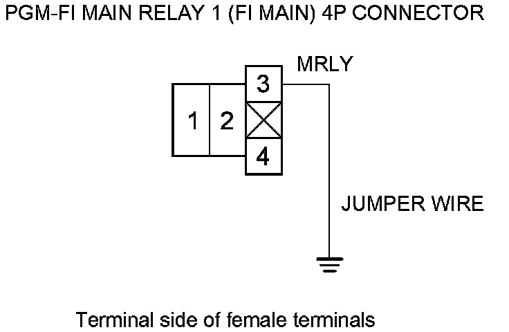 61. Connect PGM-FI main relay 1 (FI MAIN) 4P connector terminal No. 3 to body ground with a jumper wire.