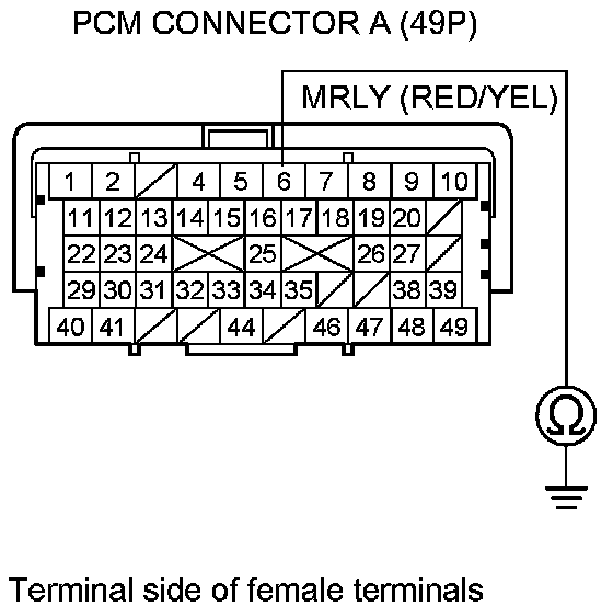 Test PGM-FI main relay 1 (FI MAIN) Power Relay Test. If the relay is OK, update the PCM if it does not have the latest software PCM Update, or substitute a known-good PCM Initial Inspection and Diagnostic Overview, then recheck. If the symptom/indication goes away and the PCM was updated, troubleshooting is complete. If the symptom/indication goes away and the PCM was substituted, replace the original PCM Service and Repair.�