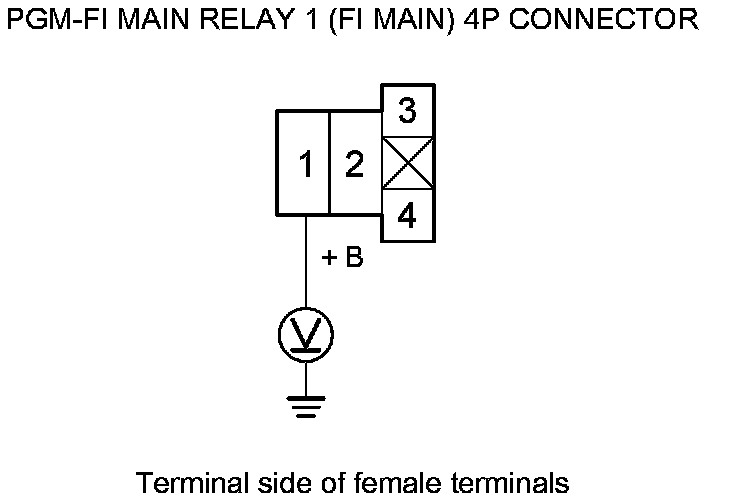 69. Measure the voltage between PGM-FI main relay 1 (FI MAIN) 4P connector terminal No. 1 and body ground.