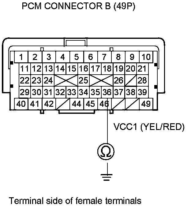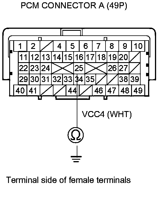 31. Check for continuity between PCM connector terminal A49 and DLC terminal No. 14.