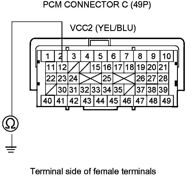 78. Check for continuity between PCM connector terminal C12 and body ground.