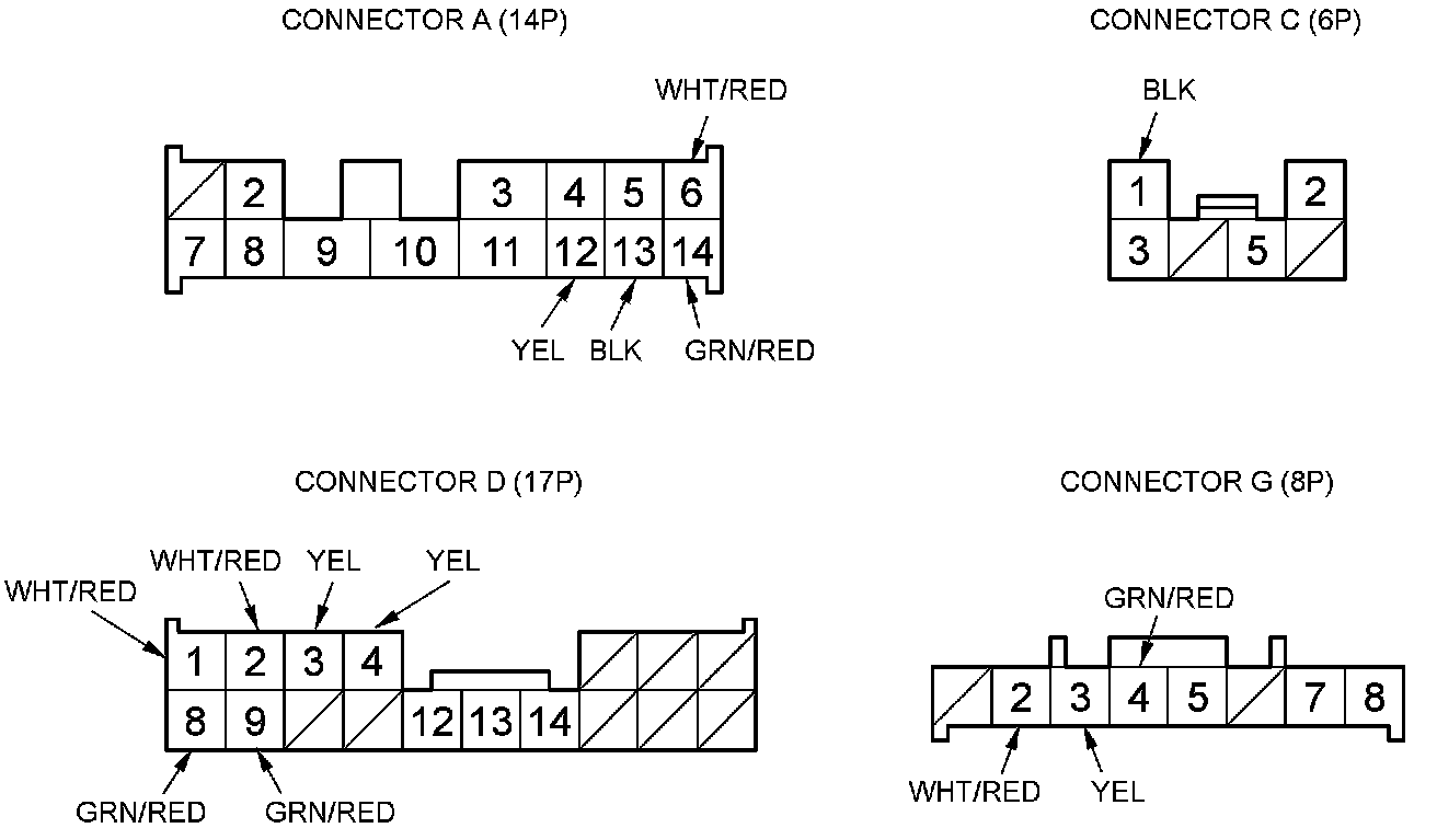 2. Disconnect MICU-rear junction box connectors A, C, D, and G.