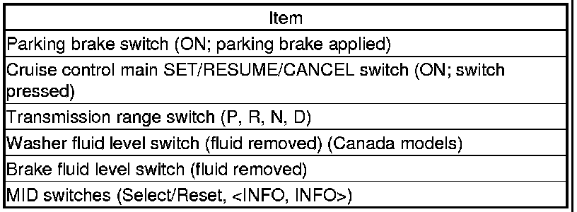 12. The following tables list the circuits that can be checked in Test Mode 2. Operate the switch that is most closely related to the problem. If the circuit is OK, the map lights will blink once. If the circuit is faulty, there will be no indication.