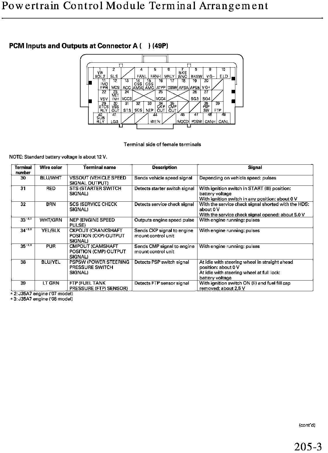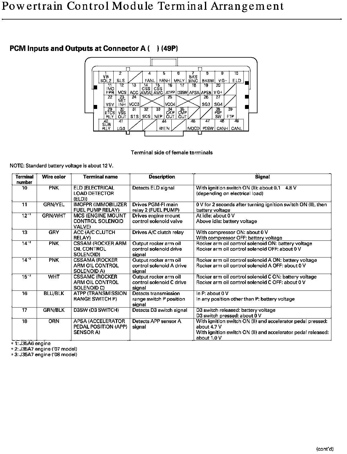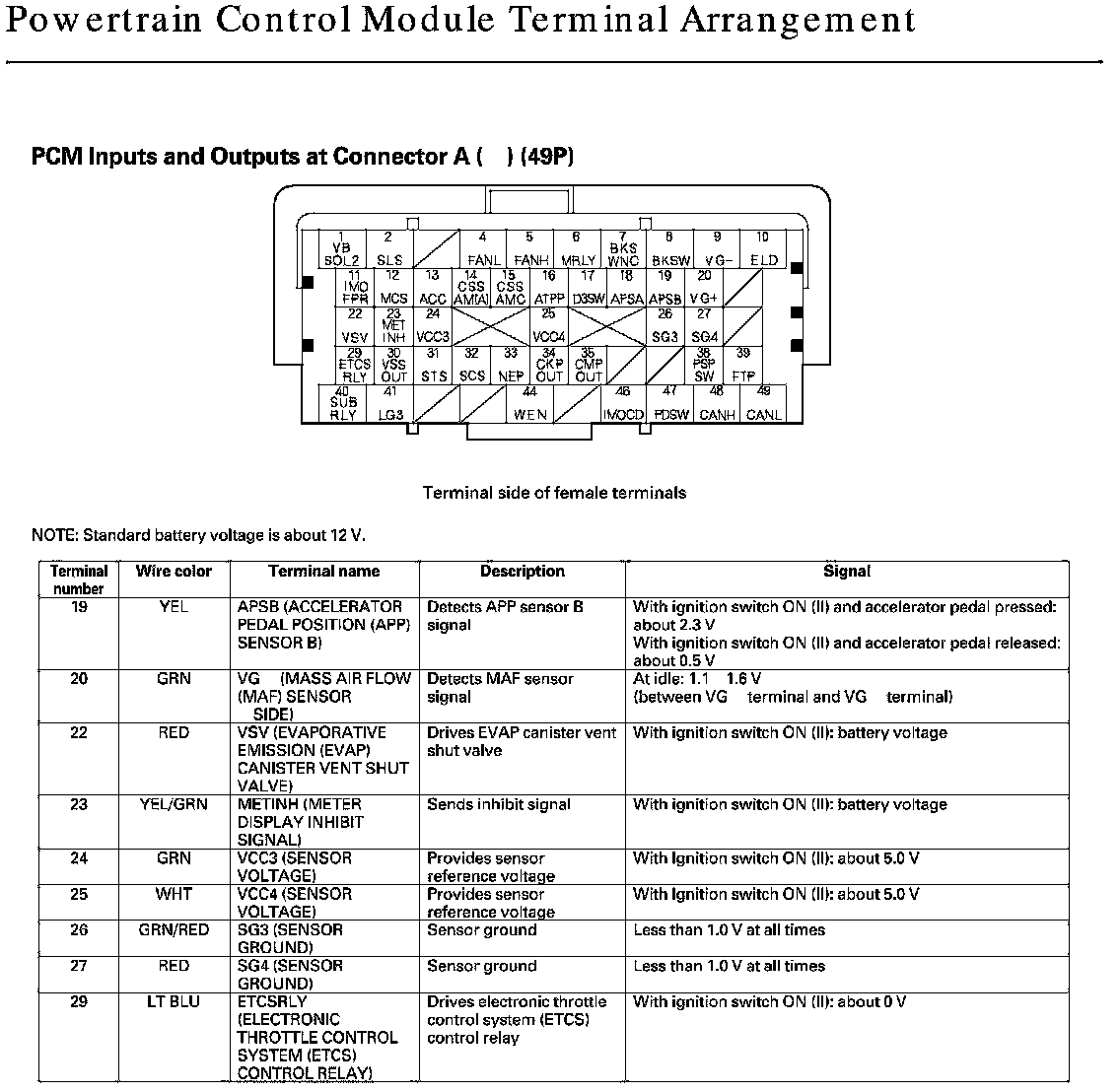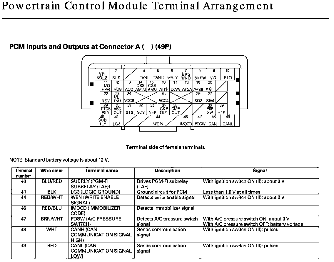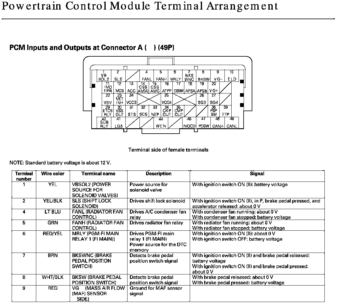 PCM Inputs And Outputs At Connector A