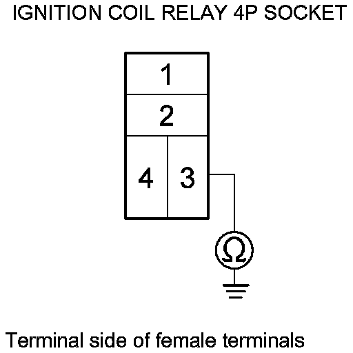 11. Check for continuity between ignition coil relay 4P socket terminal No. 3 and body ground.