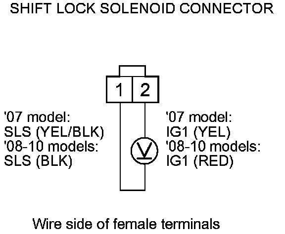 6. Disconnect the shift lock solenoid connector Shift Lock Solenoid Replacement.